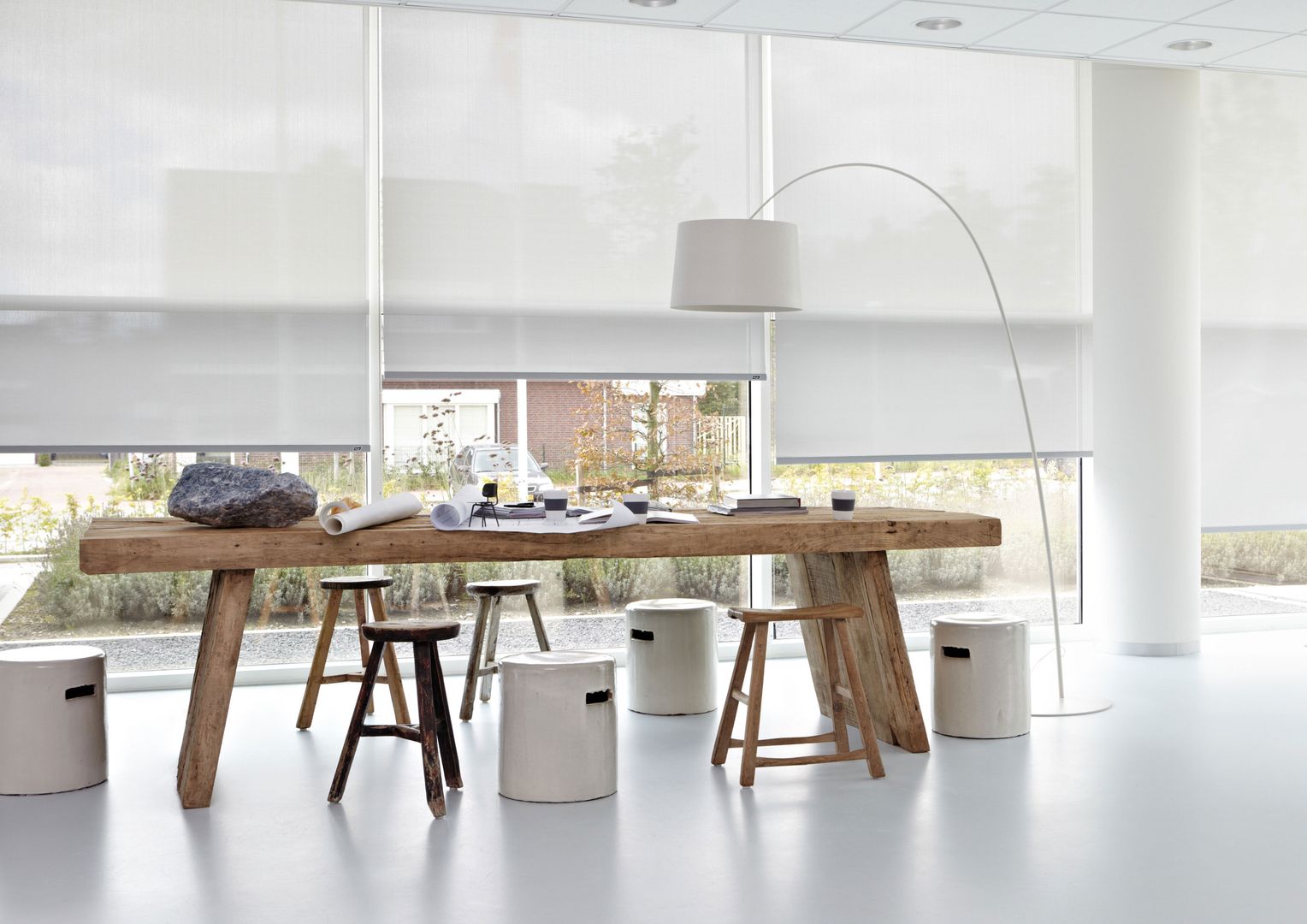 Das Rollo nimmt daher im Interior Design genauso eine wichtige Funktion ein wie es mit einer breiten Palette an Bedienungs- und Montagemöglichkeiten sein Funktionsspektrum seit anno dazumal erweitert hat. Varianten in unterschiedlicher Transparenz sowie innovative Gewebearten bieten einen großen Reigen an Interpretationsmöglichkeiten. Abdunkelung nach Wunsch schaffen dabei unterschiedlichste Lichtdurchlässigkeitsvariationen von durchsichtig bis blickdicht. Spezialgewebe unterstreichen durch ihre Oberflächenstruktur vor allem im Objektbereich ein stylishes Flair. Elektrisch Antriebe und automatische Steuerungen begeistern Hightech-Freaks.